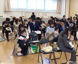 4月1日 かめやま保育園 第9回入園式が行われました。たくさんのお友だちに出会えて嬉しく思います。これから毎日、お友達や先生達と楽しく元気いっぱい遊びましょう。 1年間どうぞよろしくお願いいたします。