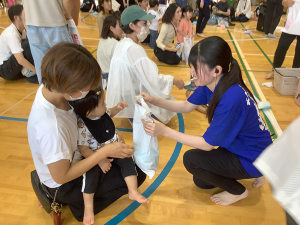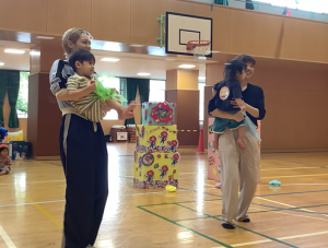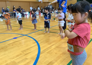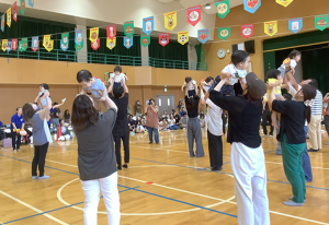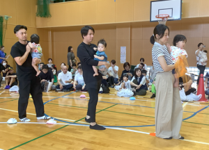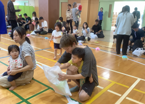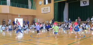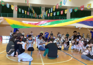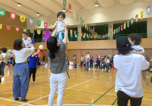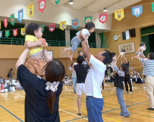 保育園の中では小さいクラスの0・1・2歳児さんは、親子遊戯や親子かけっこなど、お家の方々と一緒に行う 親子運動会を行いました。皆さん素敵な笑顔でした。